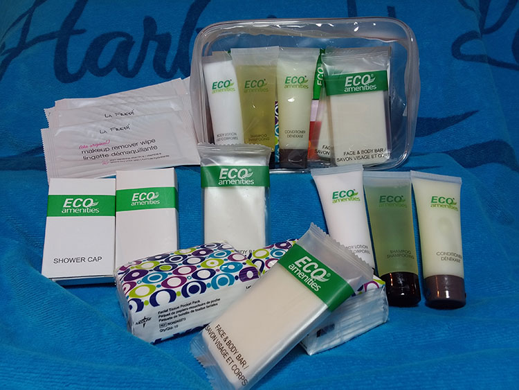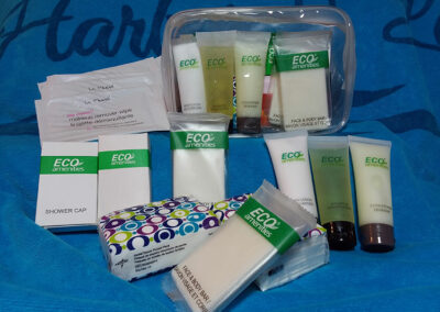 • Toiletry Kit – (1) 1oz Shampoo, (1) 1oz Conditioner, (1) 1oz Lotion